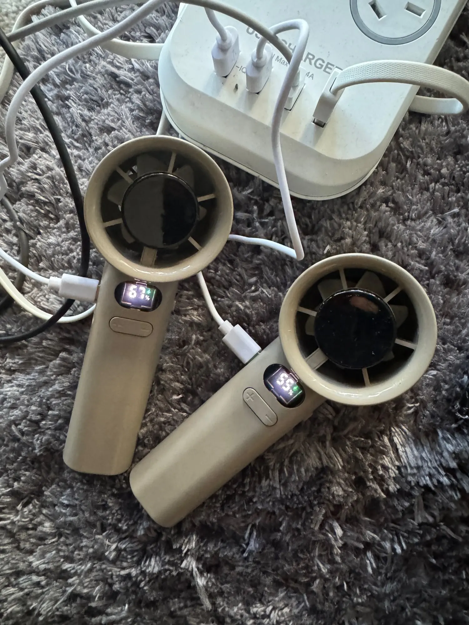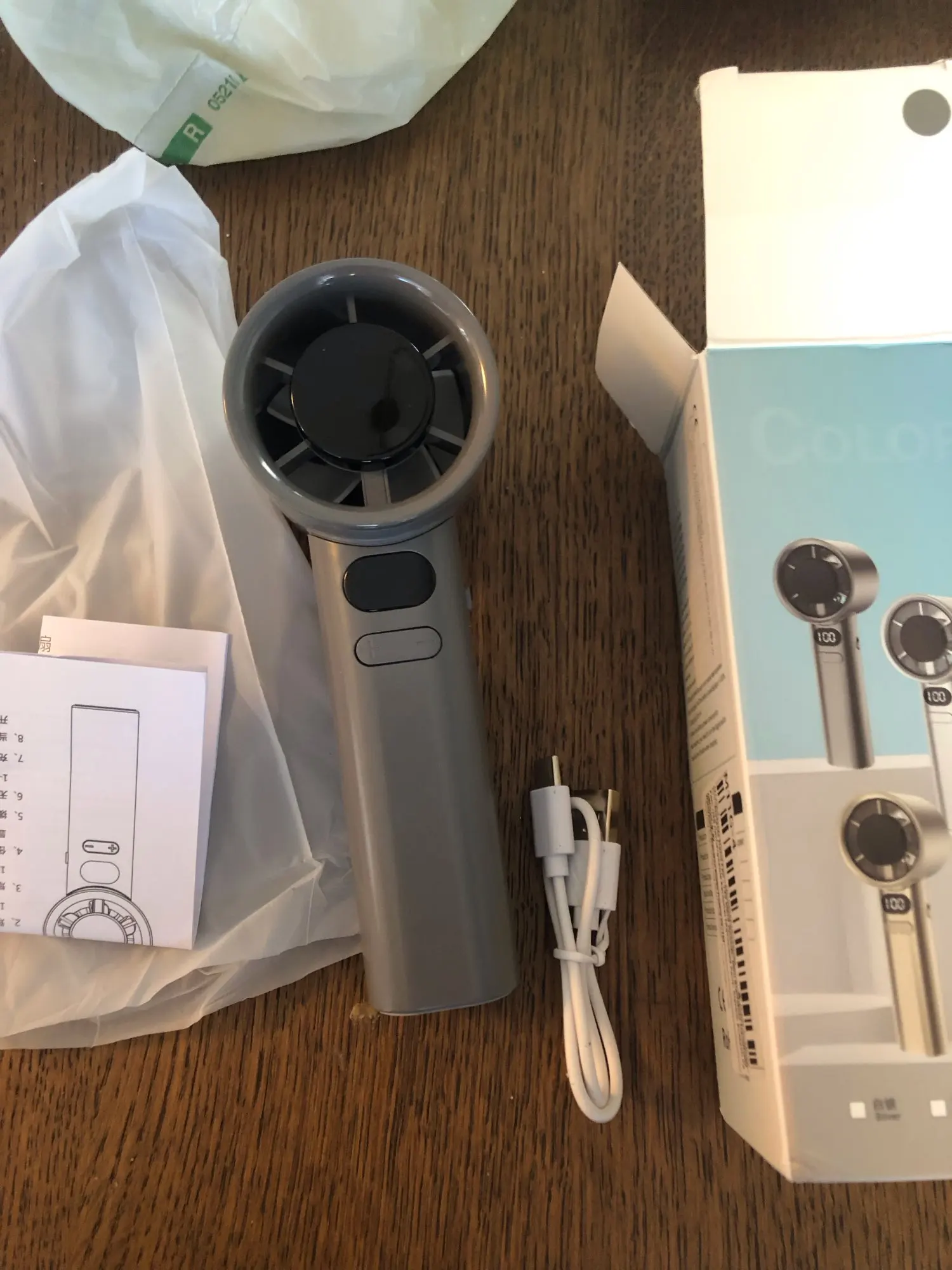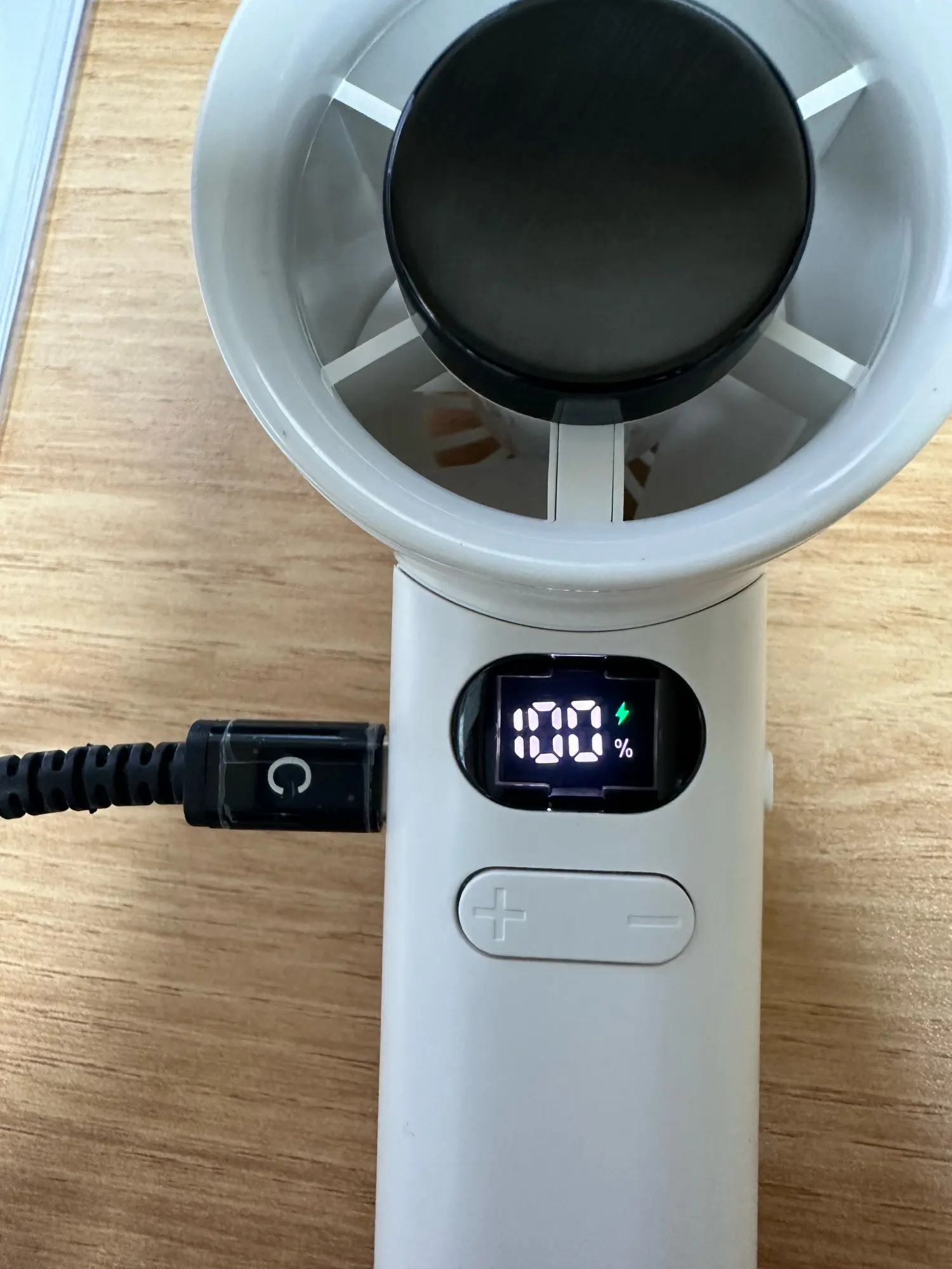 It is simply beautiful, it weighs a little more than other hand fans but it is super powerful, and aesthetically this great has 10 speeds and on the digital screen it says how much charge it has, the charging cable is Type c, I was very surprised by the 100 /10 power